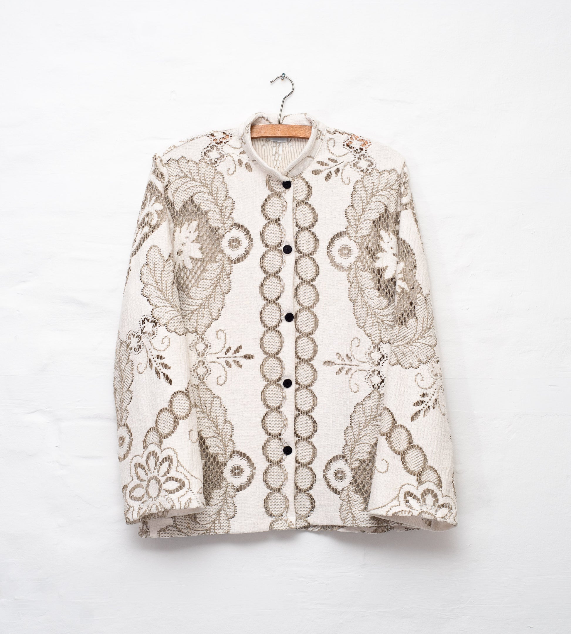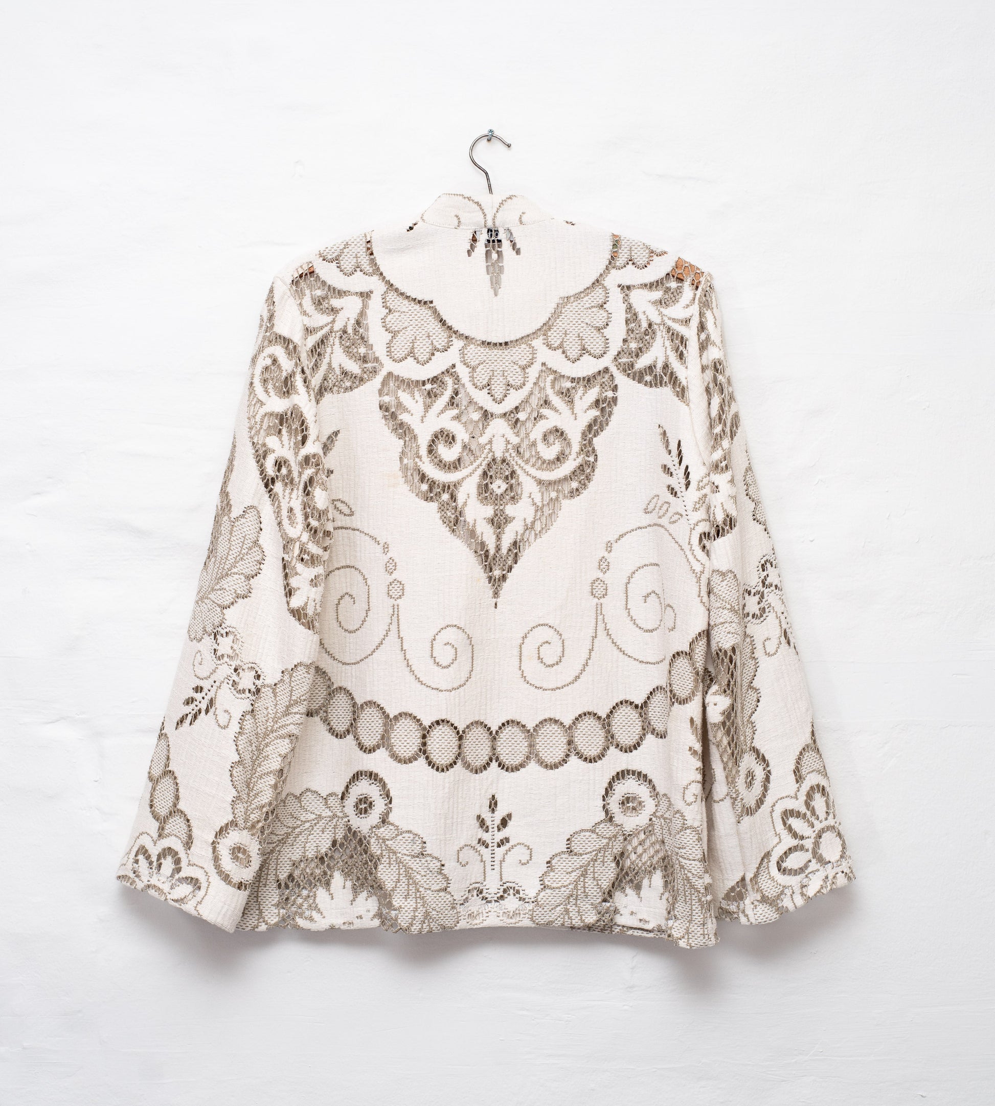 This long sleeved piece is made with antique lace from Provence. We make clothes that carry unique stories, and all characteristics, mends and relics are memories to the original fabrics.